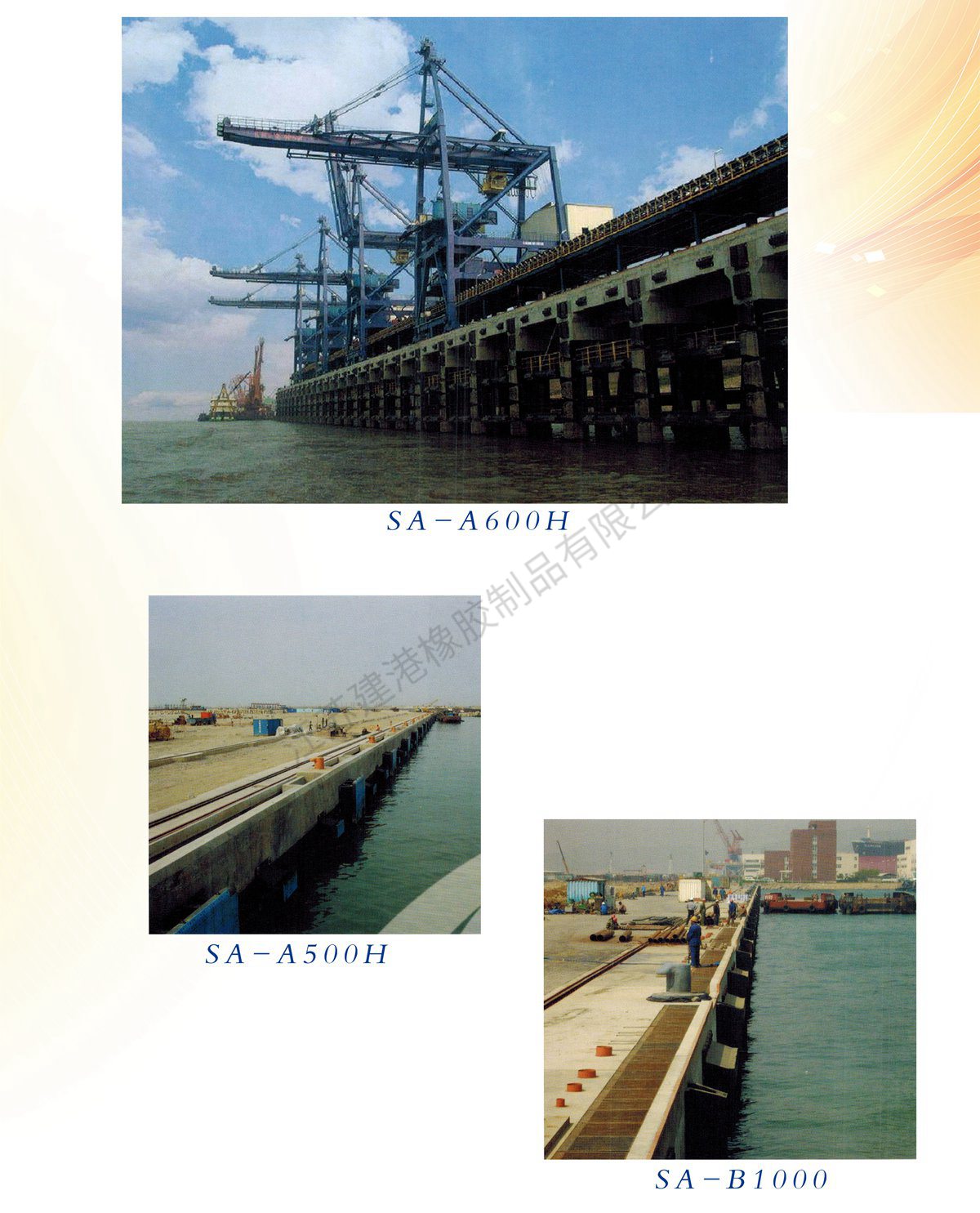 SA-A特点:1、吸能量高、反力低2、有高应力分散性3、安装牢固、更换方便SA-B特点:1、吸能量高、反力低2、适用于框架码头3、高强度安装,使用寿命长