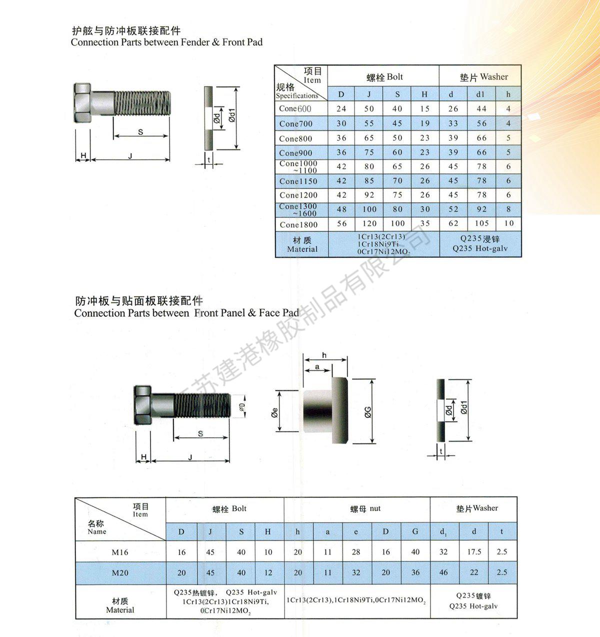 3 、护舷前端设有防冲钢架,从而降低船舶靠泊面压力,适用于大型港口、码头。